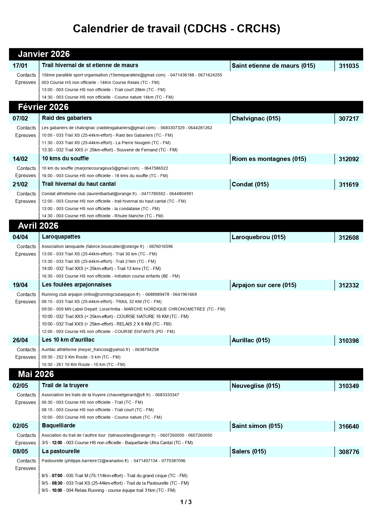Le guide des courses Hors stade du Cantal 2026